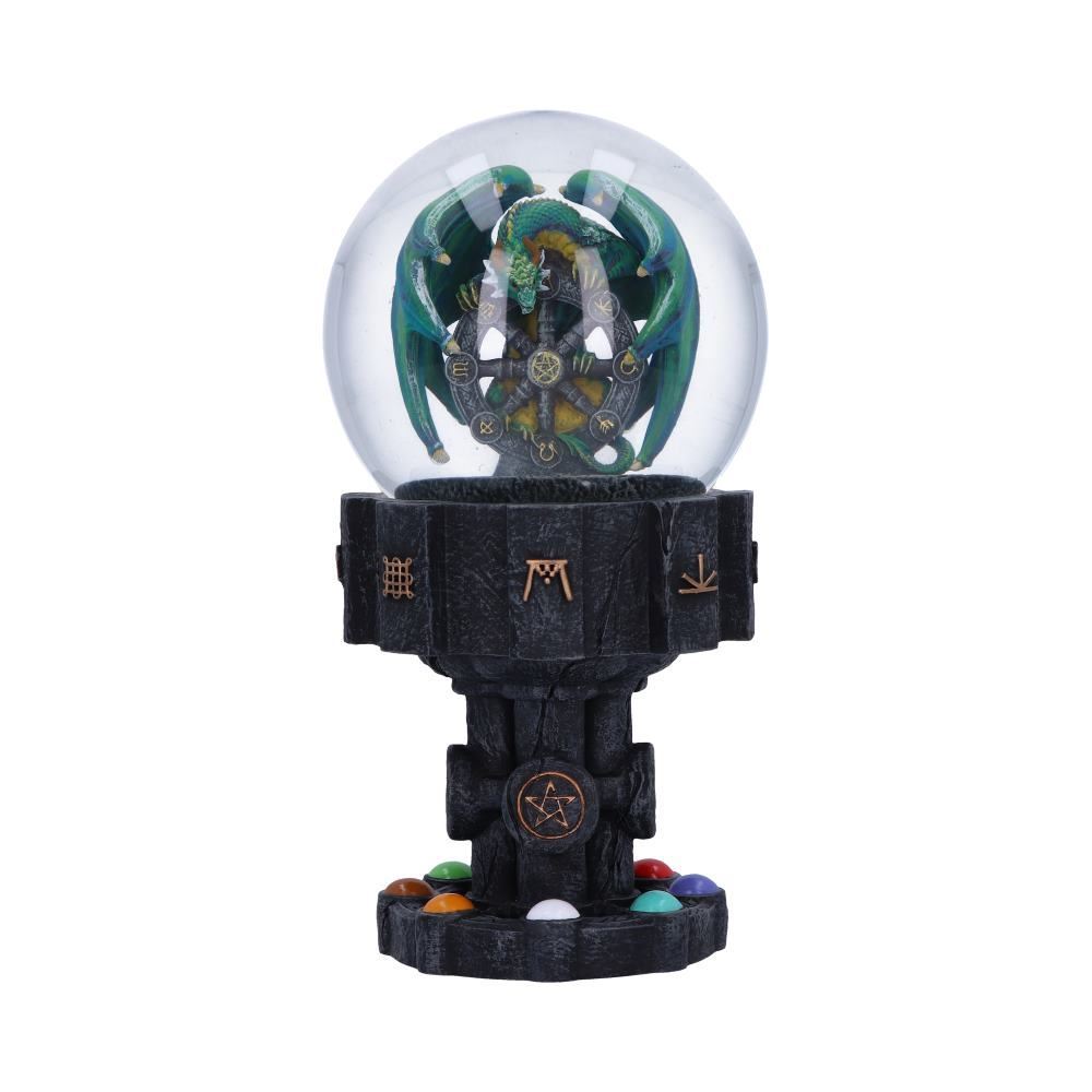 Exclusively available at Nemesis Now is this Year of the Magical Dragon Snow Globe, formulated in the mind of world-class fantasy artist Anne Stokes. Celebrating the Pagan representation of the annual cycle of seasonal festivals, this snow globe features carefully chosen symbols to illustrate the year's chief solar events (solstices and equinoxes) and the midpoints between them. While in the centre of the piece a magnificent emerald dragon with a yellow underbelly can be seen climbing and peeking over the top of a pagan wheel. Imaginatively created and expertly detailed, this snow globe is a must-have for any dragon enthusiast who seeks to honour their pagan traditions.