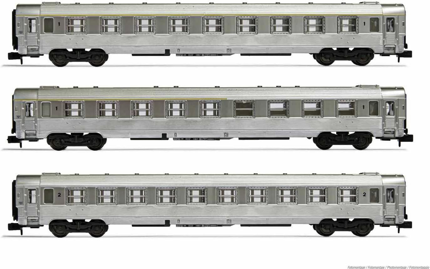Arnold SNCF 3-unit pack DEV Inox Coaches A9 A5 Bar Coach and B10
