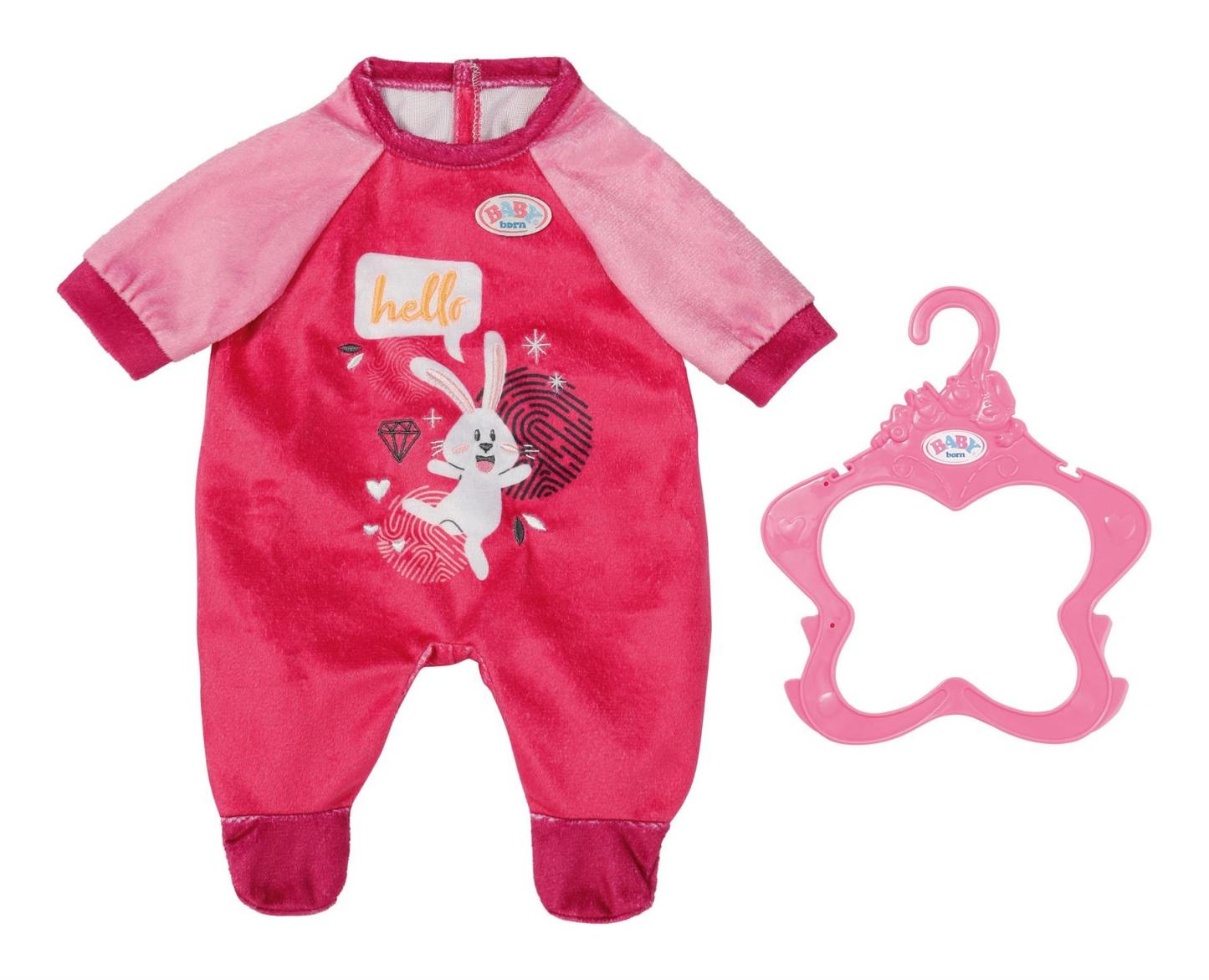 A cosy pink romper which is great for playing all day! With it's soft pink fabric BABY born will be nice and snug. There's even a little bunny print on the front. With it's Velcro fastening any changes in and out of the romper are made super easy. BABY born Romper Pink 43cm including clothes hanger. To fit dolls up to 43cm, suitable for children aged 3+.