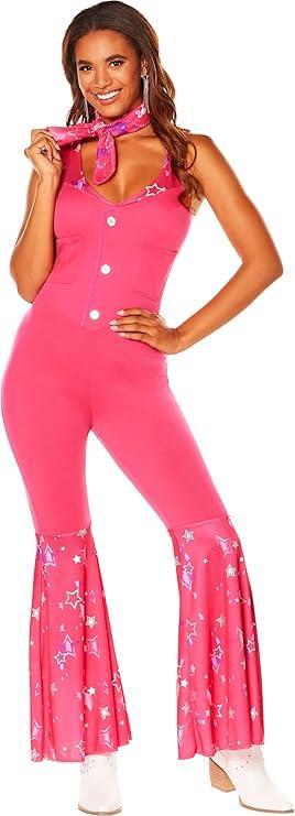 Barbie fans, we have the costume of your dreams! This Barbie Adult Classic Cowgirl Costume is perfect for your next Halloween party or social gathering. This Barbie cowgirl costume for adults includes a pink sleeveless jumpsuit and a matching bandana for a perfectly coordinated Barbie doll style. Please note that Barbie Cowgirl Hat is not included in this costume. Made of lightweight polyester, this costume is durable and easy to care for year after year. Size 16-18