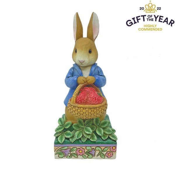 Peter Rabbit with Basket of Strawberries Figurine Made from cast stone. Packed in a branded gift box. Unique variations should be expected as this product is hand painted. Not a toy or children's product. Intended for adults.