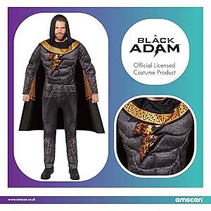 Transform into the super-cool Black Adam with this officially licensed costume. Detailed padded jumpsuit with a hooded cape to complete the look. Packet includes: Padded jumpsuit and hooded cape Size: X-Large