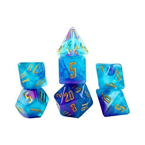 Set of 7 polyhedral dice plus 1 extra D20. Packaged in a flat-bottom tube, so you can easily carry and store your dice.