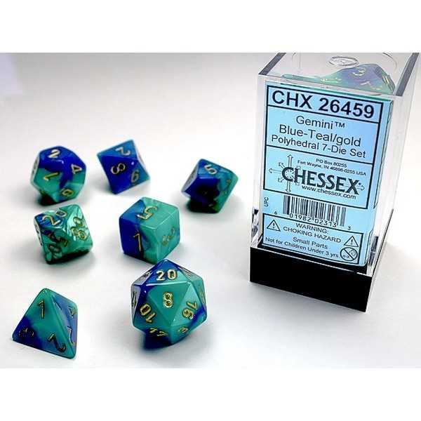 Chessex Gemini Poly 7 Set: Blue-Teal/Gold Dice Set