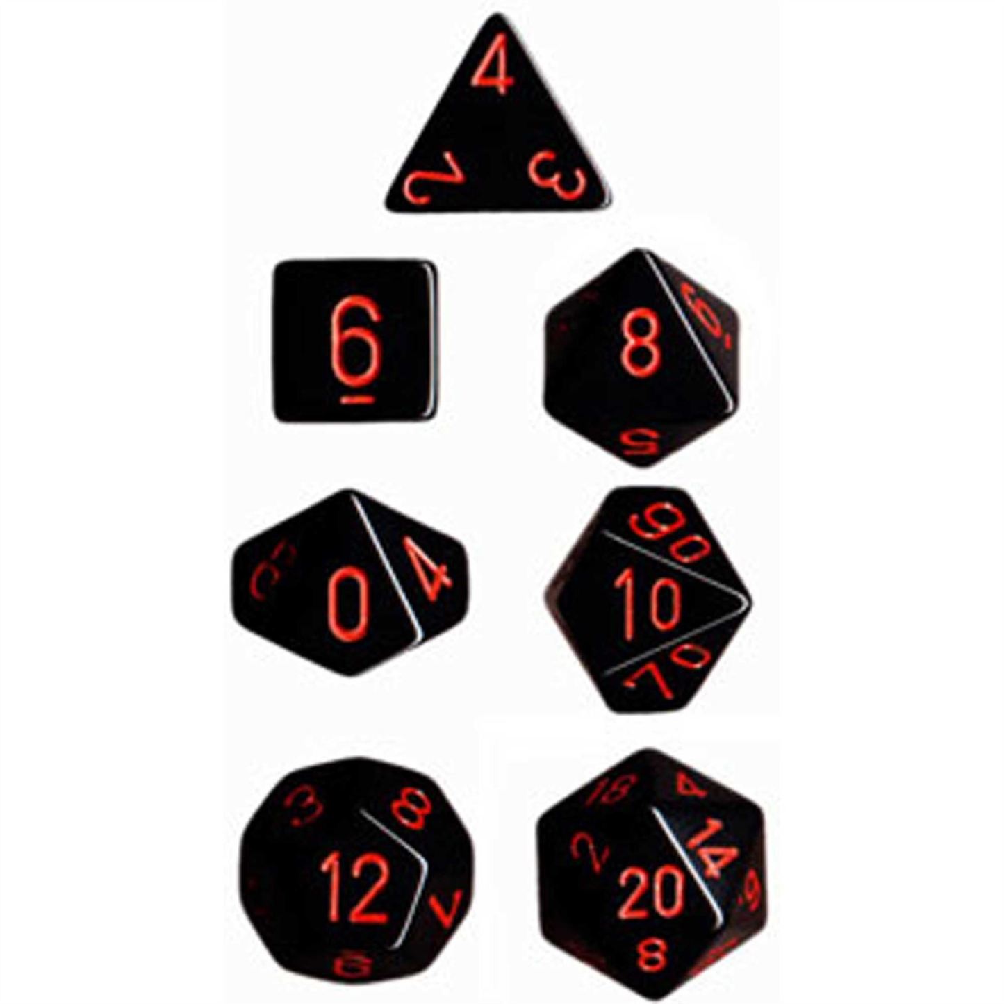 Chessex Opaque Poly 7 Set: Black/Red Dice Set