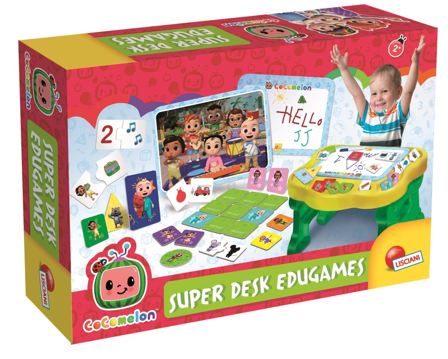 Designed especially for young children aged 2+ years this desk contains plenty of activities that will delight little ones. With 10 fun games prefect for entertaining young children and aiding their development in logic, memory and imagination. Encourages language skills with the much loved familar characters from the TV serie Cocomelon. Containing a writing board with erasable marker, educational table, memo, numbers game, association game, shadow and shapes game. A lovely gift for little children on any occassion.