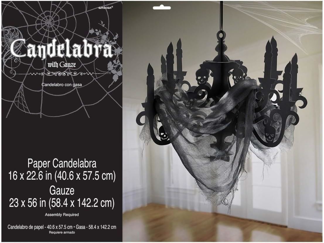[EERIE ELEGANCE] : Transform your space into a haunted haven with the Black Chandelier Halloween Decoration, exuding an aura of eerie elegance. [GOTHIC-INSPIRED DESIGN] : This captivating decoration features a black gauze fabric and a paper candelabra, creating a striking and gothic-inspired centerpiece. [DIMENSIONS] : The paper candelabra measures 16 x 22.6 inches (40.6 x 57.5 cm), while the cascading gauze spans 23 x 56 inches (58.4 x 142.2 cm), adding a touch of mystery and intrigue. [ASSEMBLY REQUIRED] : Engage in the decorating process as you assemble the pieces to create a chillingly elegant ambiance for your Halloween party or other themed events. [VERSATILE DECOR] : Beyond Halloween, this decoration is perfect for themed parties, festivals, weddings, birthdays, and anniversaries, making it a versatile addition to your decor collection.
