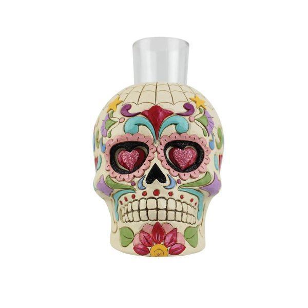 Designed in the iconic style of Jim Shore. This Day of the Dead purple skull candleholder is beautifully decorated with lively Mexican inspired pattern and colour. Modelled after a sugar skull. Hand painted in high quality cast stone. Designed by award-winning artist and sculptor Jim Shore for Heartwood Creek. Item is supplied in branded gift packaging. Unique variations should be expected due to product being hand painted.