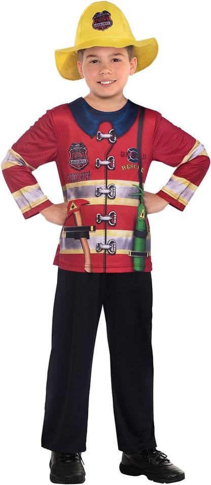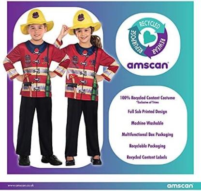 Save the town in this recycled firefighter costume. Made from 100% recycled materials and machine washable, your little fire fighter will not only be fighting fires but being environmentally friendly too. This 2 piece: hat and printed top, is the perfect set to help your little one live their dreams of becoming a firefighter and being the local hero.