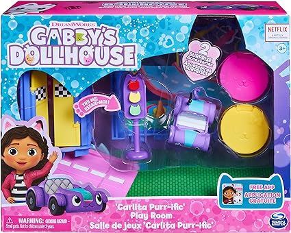 EXCLUSIVE CARLITA TOY CAR: With authentic true-to-show design details and styling, Carlita features real working wheels and looks just like she does in the hit Netflix series from DreamWorks DOLLHOUSE DELIVERIES AND ACCESSORIES: Featuring a street-themed see-saw ramp, a mini stop-light with a pop-out graphic and two dollhouse deliveries with surprise toys "a traffic cone and a petrol can