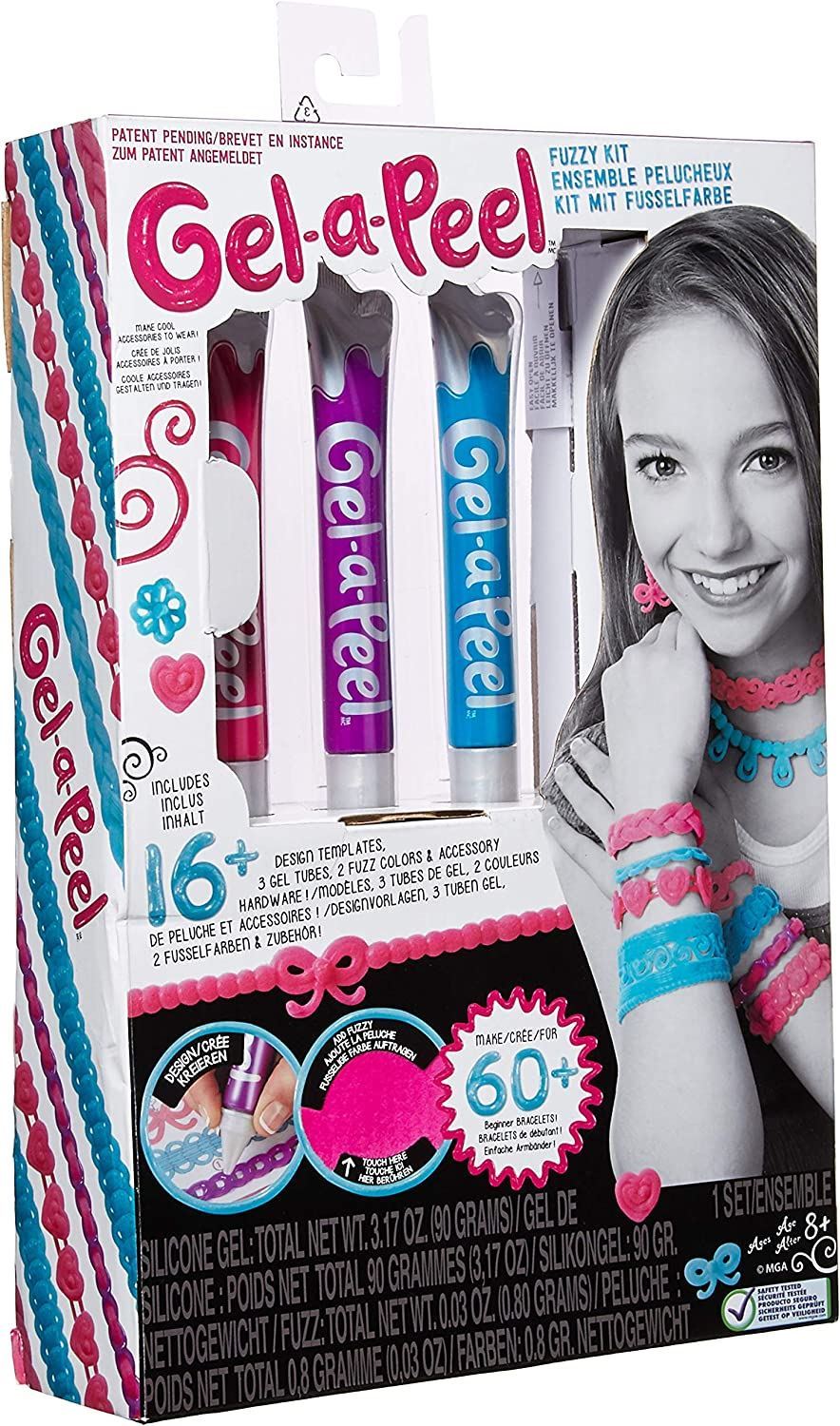 Gel-a-Peel allows you to express yourself through your own designer creations! Create fashionable fuzzy jewellery and lifestyle accessories! Use the gel colour tubes to trace the templates, peel the gel design, and your creations are ready to wear! Use the gel tray and squeegee tool to make charms and jewels! Make over 60 accessories to wear or share with your friends!