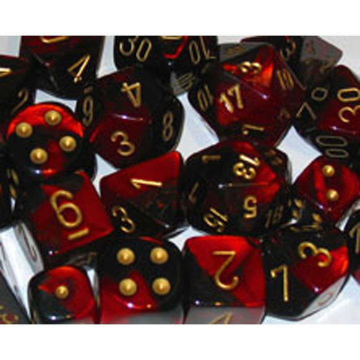 Gemini Poly 7 Dice Set: Black-Red/Gold