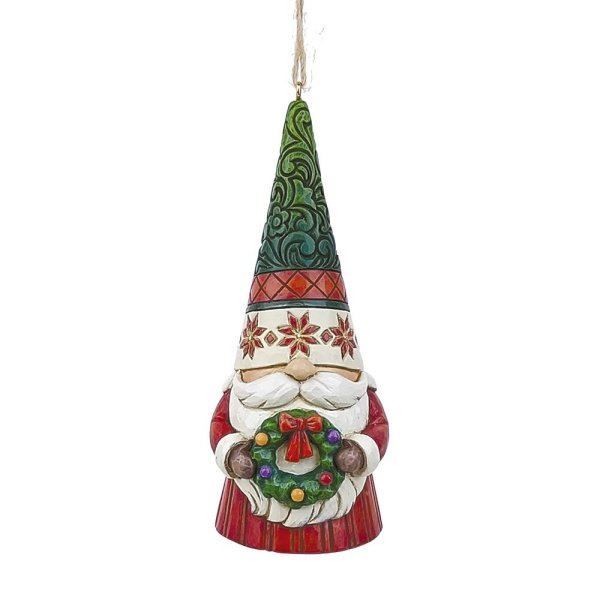 Celebrate Christmas with this beautiful hand crafted and hand painted Gnome Holding Wreath Hanging Ornament. Decorate your tree this Christmas with this cheerful Gnome Holding Wreath Hanging Ornament. Evoking feelings of nostalgia and Christmas tidings, Jim Shore's unmistakable style with his quilt patterns and design motifs inspired by American and European.