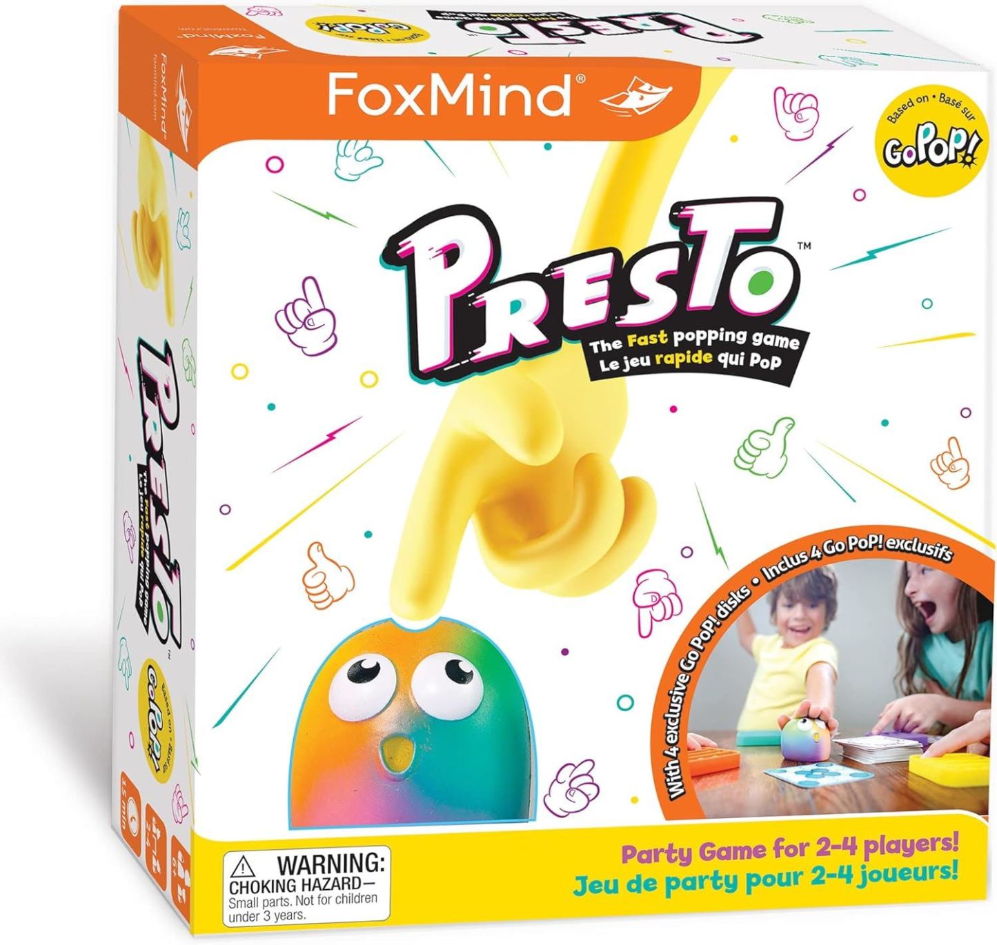THE ORIGINAL, CLEVER AND INGENIOUS BUBBLE POPPING GAME EVERYONE LOVES. Use speed and dexterity to win in this 4 player family game. Enjoy the fidgety bubble popping action and match wits against your opponent playing the classic game of Go PoP! MEET BUBBLO THE CUTEST SQUISHY EVER! This bubble character is made out of the best quality foam and is great to play with. Put Bubblo in the center of the table and hit it when finishing a challenge card. Bubblo likes to be pressed and you can carry it around anywhere!