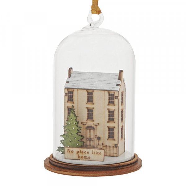 The Spirit of Christmas. A collection of delightful wooden decorations that capture the essence of that special time of year. This glass dome, Christmas decoration encases a magical house, adorned with a Christmas tree and ribbon to help hang off your Christmas tree. This classic vintage style, decorative Kloche will make a stunning display in your home. Material: Glass with a wooden base. Packaging: Presented in a branded unique giftbox.