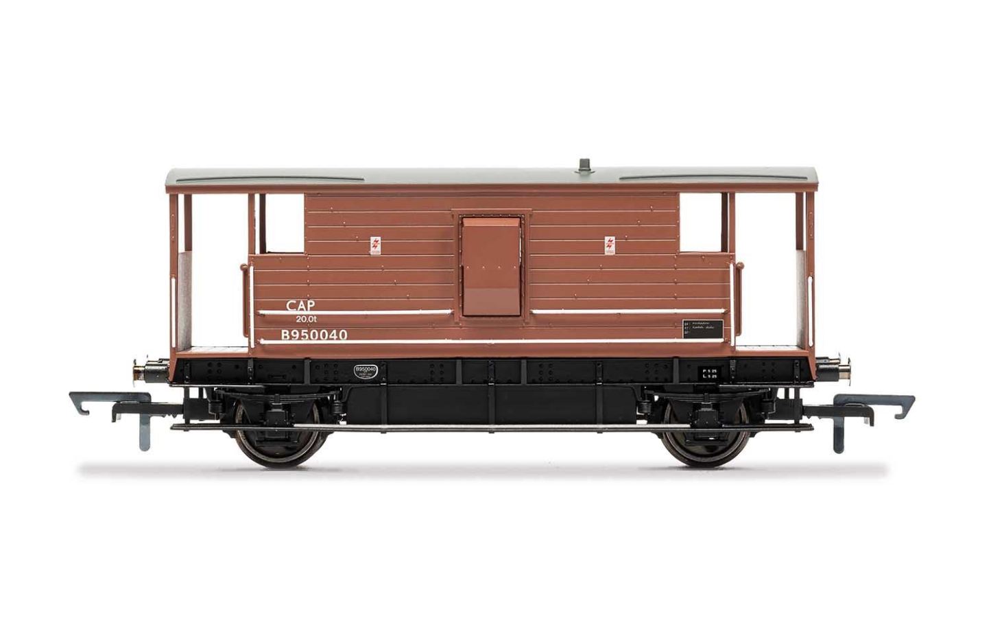 Until 1968, fully fitted freight trains were required by law to be carry a break van at the end. The brake van provided brake functionality to help slow the train as well as acting as a space in which the trains guard could carry out additional duties such as paperwork. As a result most brake vans featured a stove and desk on top of the brake apparatus. The London, Midland and Scottish Railway (LMS) built 2653 20 ton break vans between 1933 and 1947. These featured a wooden structure that spanned most of the frame, with open covered areas at either end to provide the guard with an excellent view of the train.