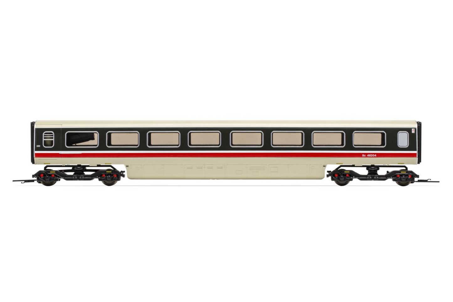 In mid-1984, TS Sc48204 was withdrawn from Set 370 004 and was sent to the Engineering Development Unit (EDU) at Derby RTC for conversion to an APT-U test vehicle, with extensive rebuilding of the underframe being undertaken in order to incorporate tilting double bogies based on the BT12 units.Following the completion of the vehicle some static testing was undertaken at Derby, as well as dynamic testing on the West Coast Mainline in an APT formation, where the coach was inserted between the TBF and NDM vehicles. The APT-U project evolved into the IC140 project which, once tilt was dropped from the specifications, became the IC225 Class 91/Mk IV rollout on the East Coast Mainline.Renumbered as 977527 in Departmental use, the coach seems to have retained 48204 while testing, the number being painted out once it had been withdrawn from the APT dynamic testing some time during mid-1989. Stored at the RTC yard in Derby, the vehicle was finally scrapped in October 1989.