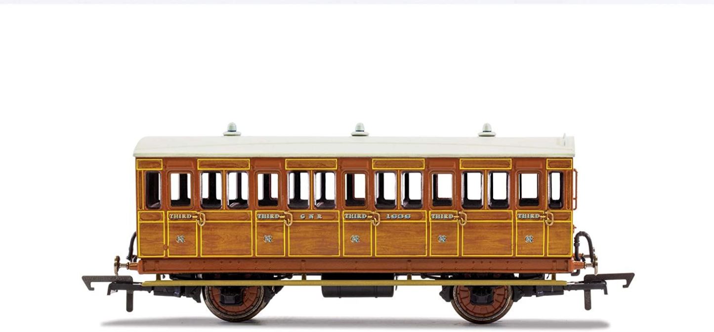 Hornby GNR, 4 Wheel Coach, 3rd Class, Fitted Lights, 1636 - Era 2