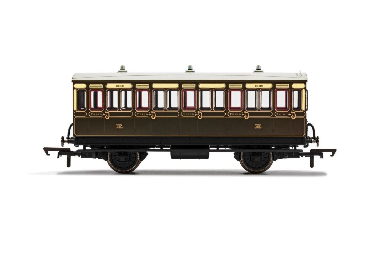 Hornby GWR, 4 Wheel Coach, 3rd Class, Fitted Lights, 1882 - Era 2/3