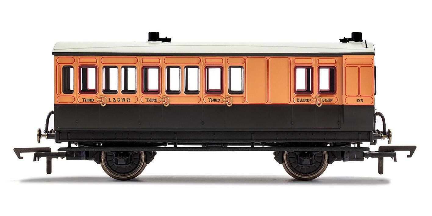 Hornby LSWR, 4 Wheel Coach, Brake 3rd Class, Fitted Lights, 179 - Era 2