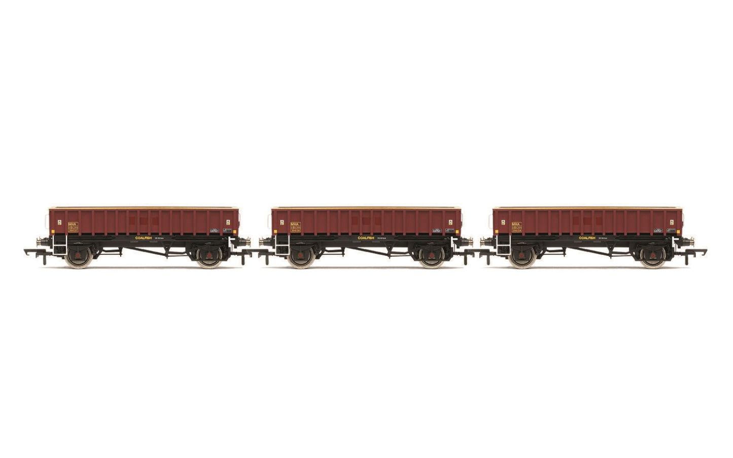 The MHA ballast/spoil box wagons were built using redundant HAA underframes by RFS(E) Doncaster in 1997. An initial order for 250 was extended several times until eventually over 1,150 wagons were converted using two distinct body styles. Early examples wore the fish-kind name "Coalfish" and some are still in use today with DB.This particular 'Coalfish' model features custom 'painted over' livery, and comes in a set of 3.