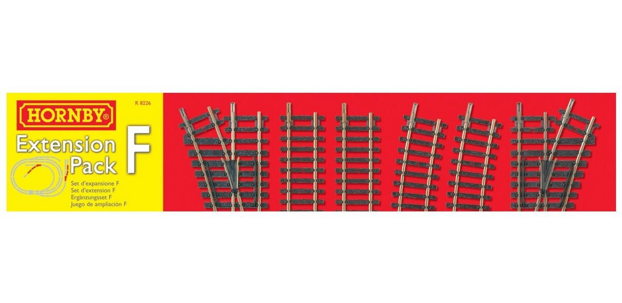 Extend your set in easy steps by adding Track Packs and TrakMat Accessory Packs all the way to the full layout pictured on your TrakMat scenic underlay sheet. Add Extension Pack F to the Starter Oval plus Extension Packs A, B, C, D and E to achieve the full TrakMat layout. Complete the scene with TrakMat Accessory Building Packs and Hornby landscaping details.Track Extension Pack F includes: 2 x Straight; 2 x Radius Curve; 1 x LH Point; 1 x RH Point; 1 x Buffer Stop.
