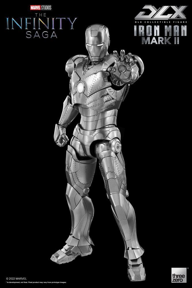 threezero and Marvel Studios are pleased to present the DLX Iron Man Mark 2 as the next figure in the Marvel DLX series. This suit was constructed as a prototype, and the first Iron Man Armor built at Stark Industries. It is characterized by its metallic silver color scheme, applied here with a multi-layer metallic coating process to accurately replicate the design of Tony Stark's armored suit as seen in the Iron Man movies.