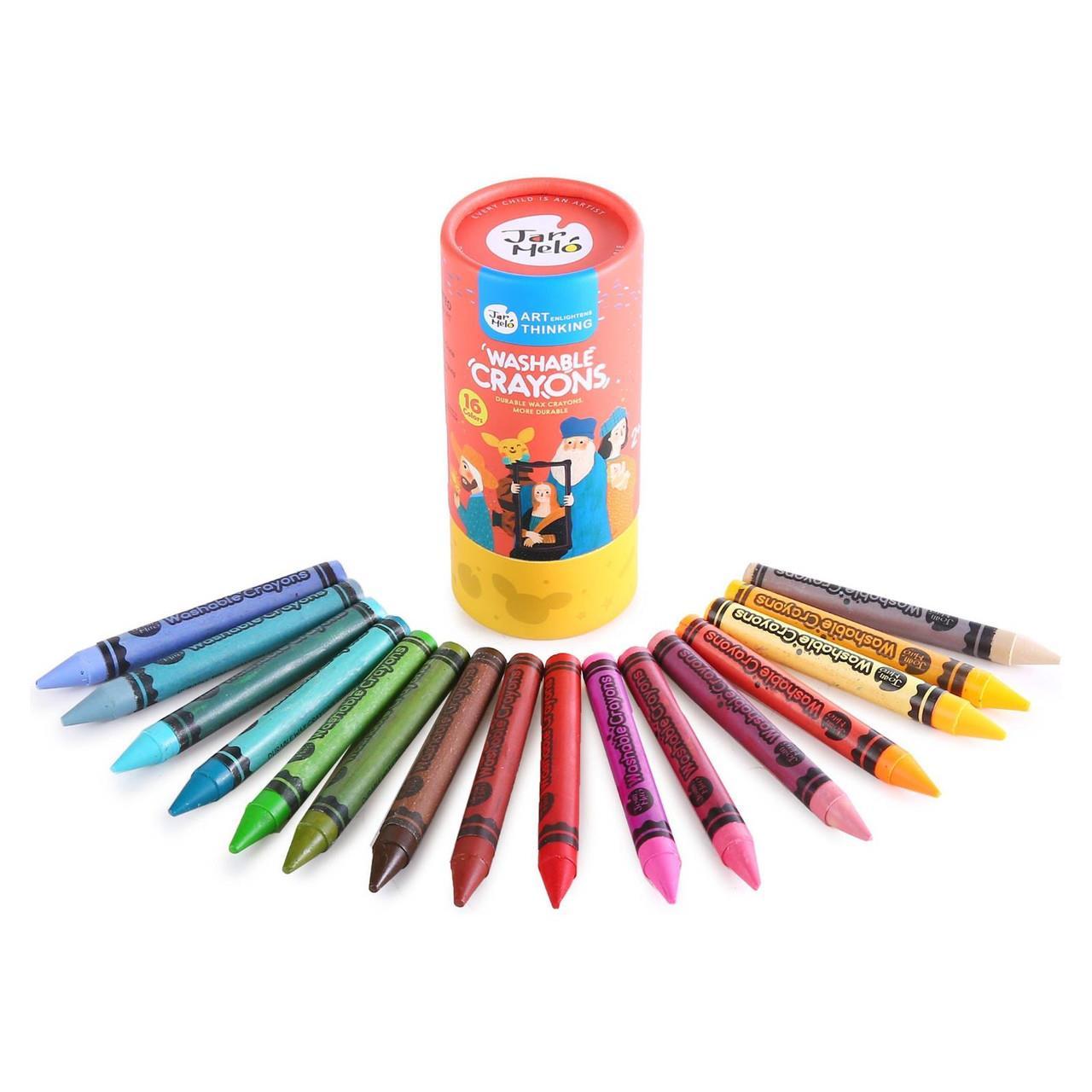 Colour, doodle and draw with these non-toxic colourful crayons - perfect for little hands. As a set of 16 bigger sized crayons, these are more durable and easier for children to use. These crayons are specially formulated to wash clean from skin, clothing, furniture and walls so are ideal for young children to use. The 16 colourful crayons are contained in a compact cylindrical presentation box, easy to store away. A great gift or present idea for young ones. Not suitable for children under 24 months. To be used under the direct supervision of an adult