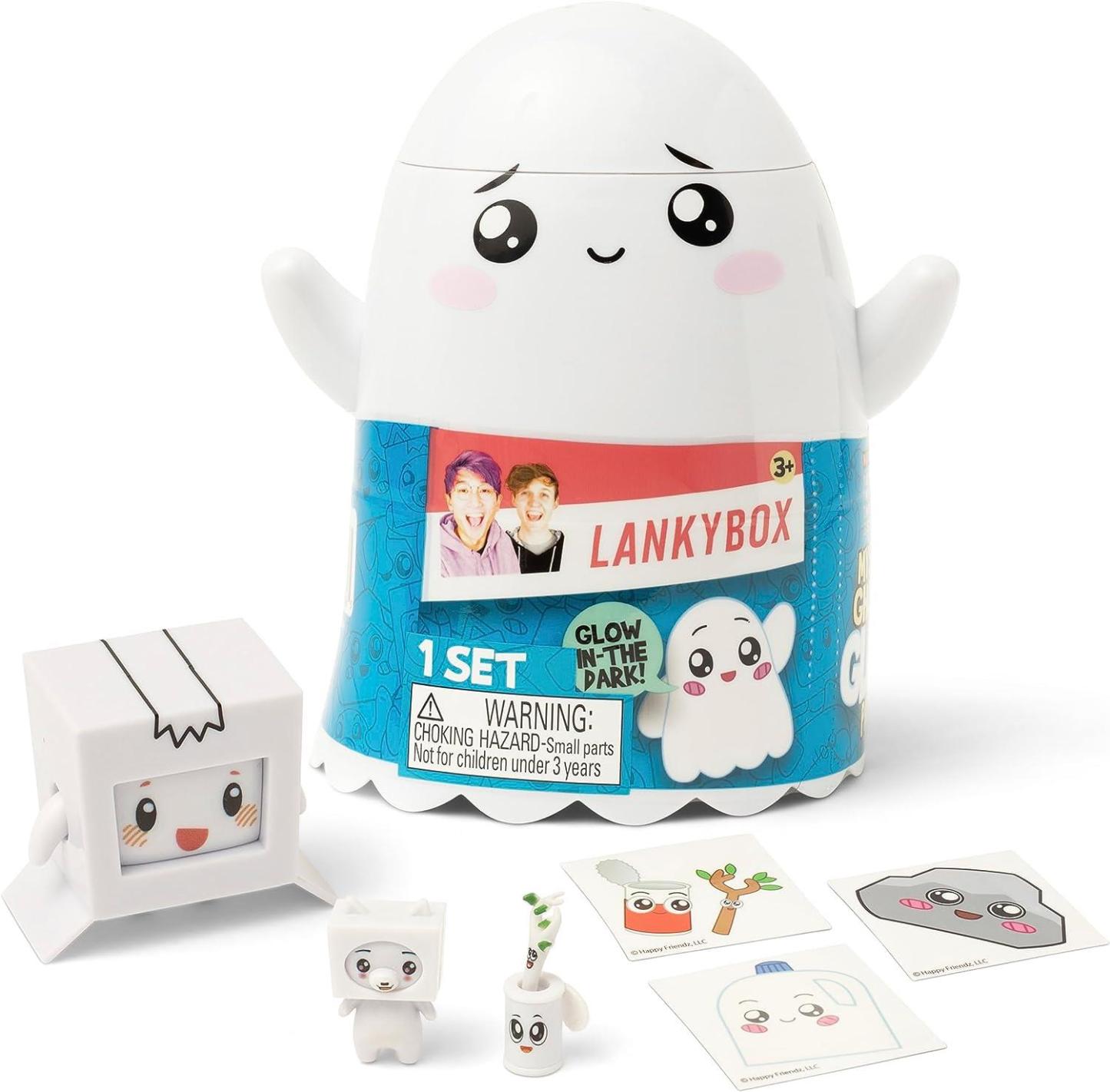 ULTIMATE UNBOXING! There are so many surprise toys to unbox the fun never stops with LankyBox! Enjoy the thrill of unboxing and discovering awesome collectibles! EXCLUSIVE LANKYBOX TOYS! This Ghosty Glow blind box contains 6 awesome toys and accessories that keep the fun alive off screen. Contents include mystery figures, micro figures, and stickers ??all exclusive to this incredible LankyBox toy set. GLOW IN THE DARK! All of the fun mystery surprises (including the outer case) are just as fun in the dark!