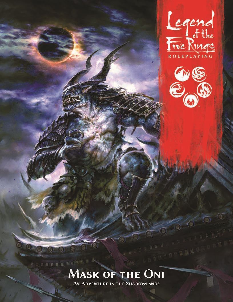 Take your players into the foreboding Shadowlands with Mask of the Oni. This adventure for the Legend of the Five Rings Roleplaying Game pits heroes against the dangers of the Shadowlands and the horrors found within the crumbling walls of the Hiruma family?? fallen castle. Tokens, maps, and an adventure booklet will guide players on their journey, but will they survive with their soul intact?