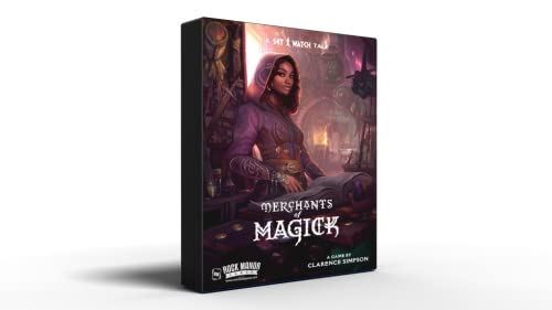 Merchants of Magick is a crunchy roll-and-write set in the Set a Watch world. In Merchants of Magick, you are the owner of a magic item shoppe, crafting items and research¬ing spells to sell to the Adventurers of the Watch. Each round 4 polyhedral dice are rolled and you select 2 of them to craft items or research enchantments for your shoppe. As you craft items and research spells, you'll start stocking items and earn potions that let you manipulate the dice. Adventurers are traveling from shoppe to shoppe so you need to stock the exact items on the order cards in front of you. If you have the exact item an Adventurer is looking for, you earn coin. If you wait too long to fulfill an order, Adventurers will become impatient and visit your competitor next door! After 10 rounds, the player who has earned the most coin is declared the winner.