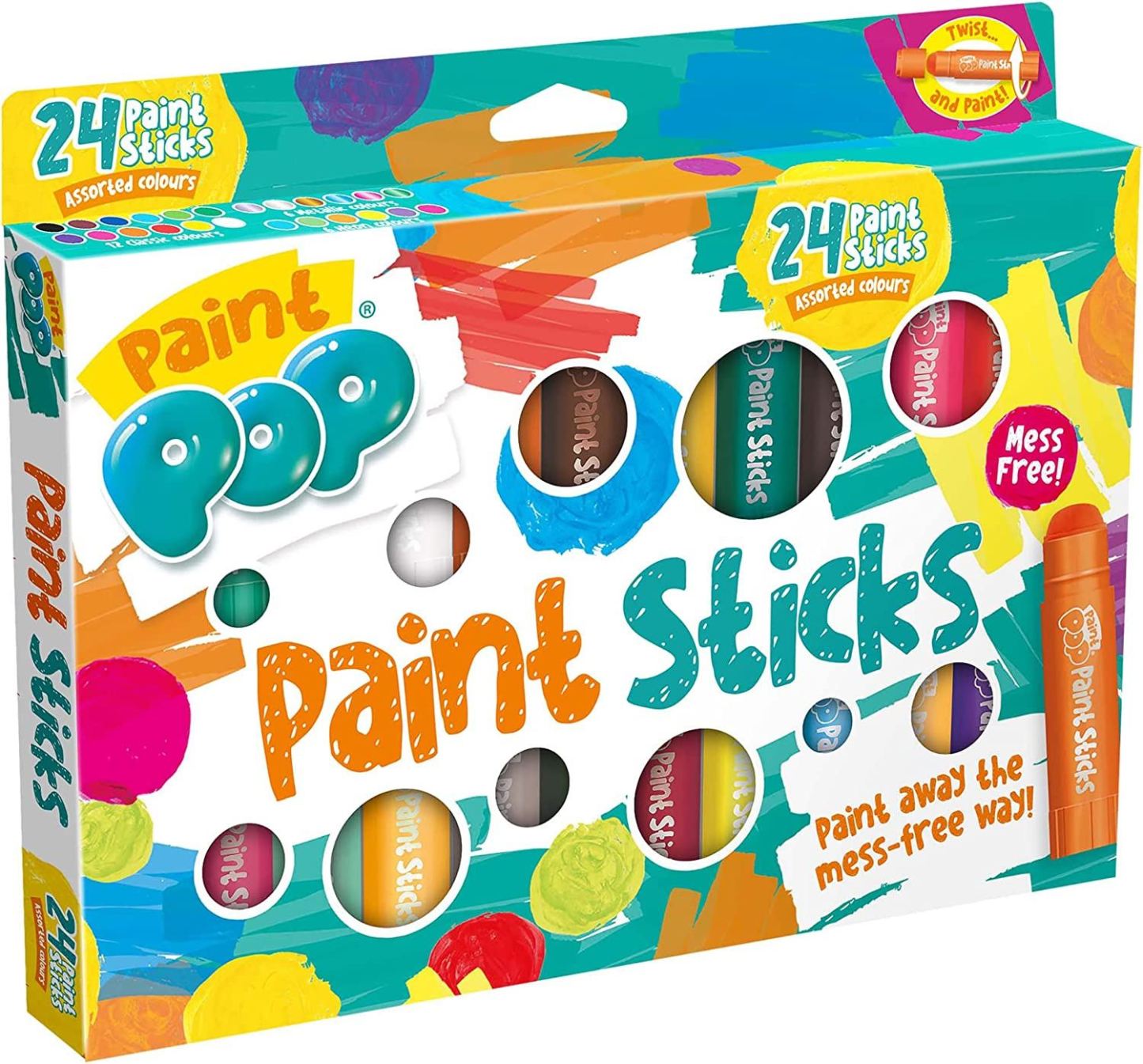 Paint Pop Paint Sticks are the perfect introduction to painting and doodling. They're bright and colourful, with no mess, creating a happy experience for all! The chunky shape is easy for little hands to hold and the smooth, glide-on paint works without needing water or brushes. Twist the stick and you're ready to paint, whether at home or on your travels. Be creative on a wide range of surfaces including on paper, card, canvas, wood and even glass. Wipe clean from glass and whiteboards using a damp cloth.