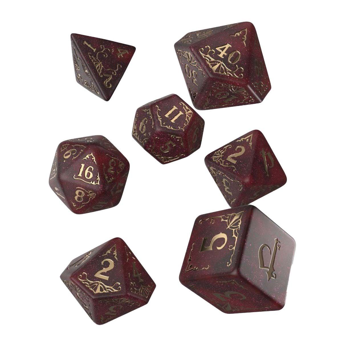 Q WORKSHOP and Paizo present an official 7-piece dice set, simple and elegant as the remastered Pathfinder Second Edition game. Not bound by a specific campaign, they can be used in many games across Golarion, like in its heavily-settled continent of Avistan! The dice background is shimmering-red, and the legible digits are painted gold. The highest faces are adorned with the Pathfinder logo.