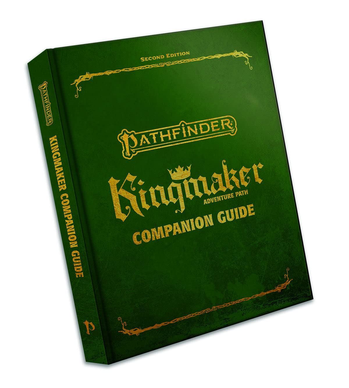 The heroes of the Stolen Lands can use all the help they can get! The Kingmaker Companion Guide presents seven fully detailed companions inspired by the Kingmaker video game, ready to provide all sorts of assistance, each accompanied by a fully detailed personalized adventure to go along with their story. This deluxe special edition is bound in faux leather with metallic deboss cover elements and a bound-in ribbon bookmark.