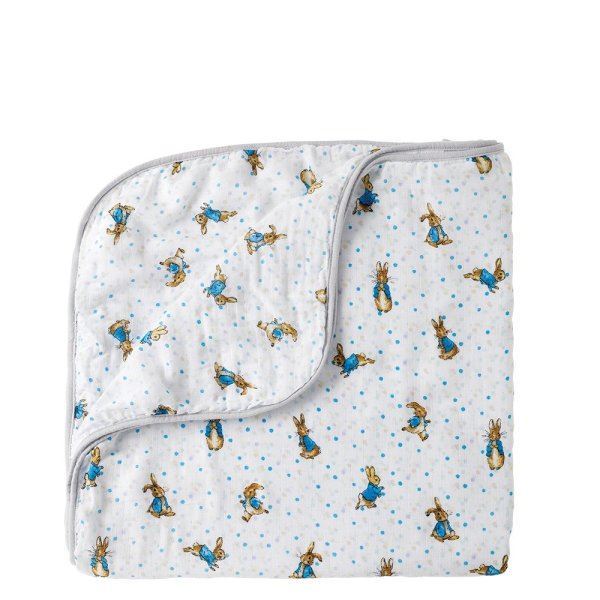 This is the dreamiest Peter Rabbit blanket you ever did see. Made from layers of luxurious 100% cotton, 105g/m2, giving your little one that extra layer of comfort and warmth in their crib. Presented on a branded gift box. This blanket is a perfect gift for any parents-to-be. Enesco is proud to present its brand-new licensed Peter Rabbit Baby Collection. Having worked closely with Penguin to create the totally exclusive artwork, the new collection follows the theme 'Come Rain or Shine.'