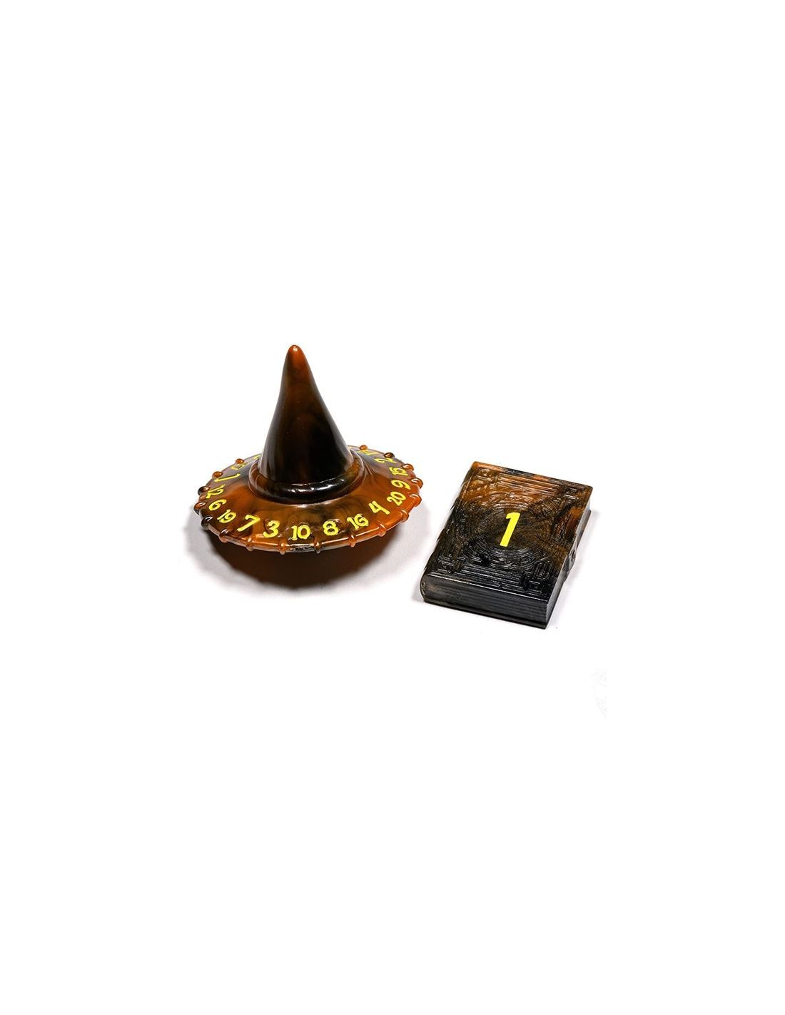 PolyHero Wizard d20 Wizard Hat and d2 Spellbook is a set including one Wizard Hat shaped D20 and one Spellbook shaped D2