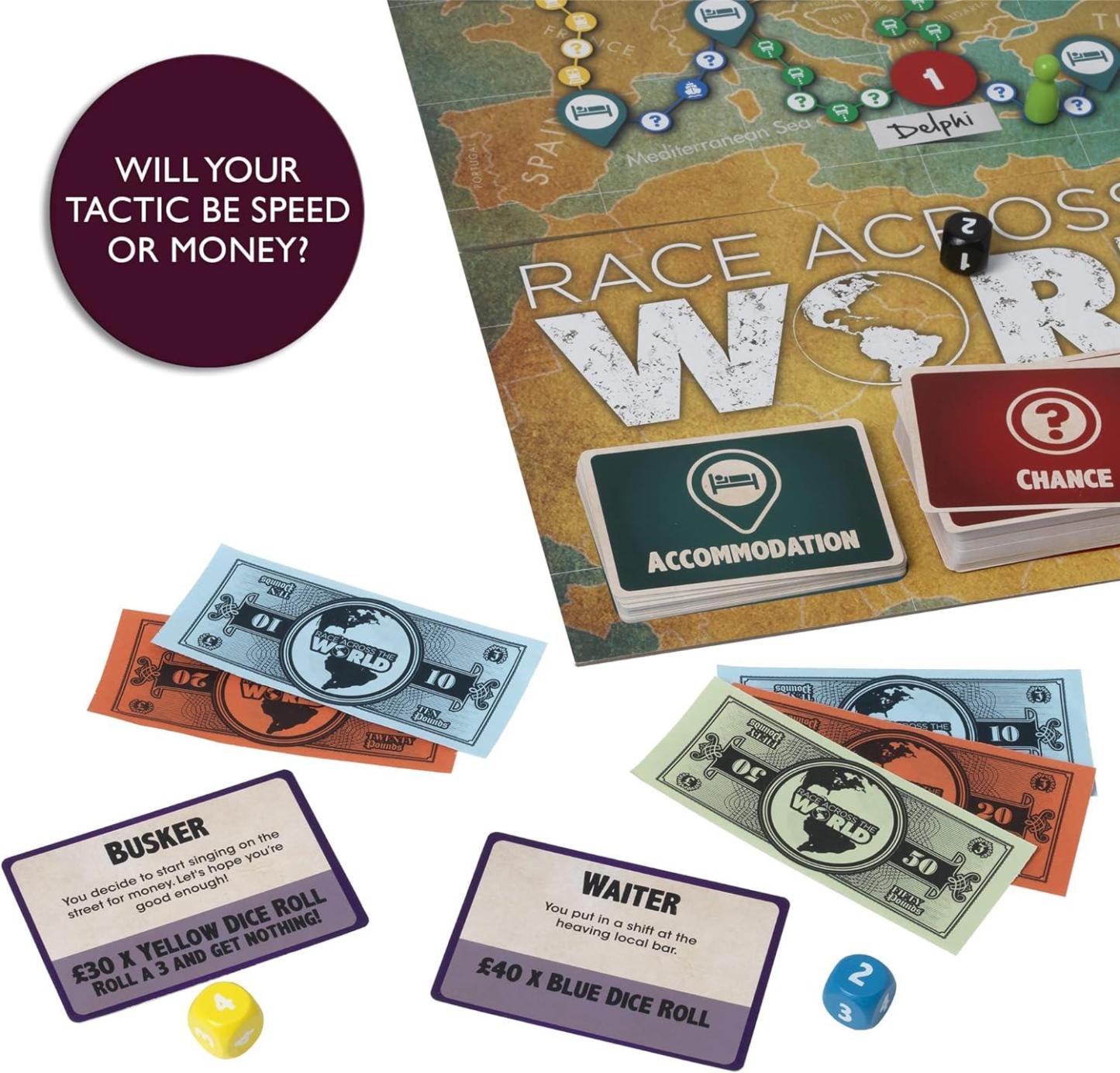 The Globe-Trotting Adventure Game! Based on the popular TV show of the same name, pairs will frantically race across the world, using any route they like but no flights or smartphones allowed. The first pair to arrive at the final destination wins! No planes, no phones, no plans. The globe trotting adventure game! Fast moving competitive race against your opponents Based on the popular BBC TV Show 'Race Across the World'. Wjat obstacles will you have to overcome to get there? Earn money by completing jobs and pay your way to the finish line