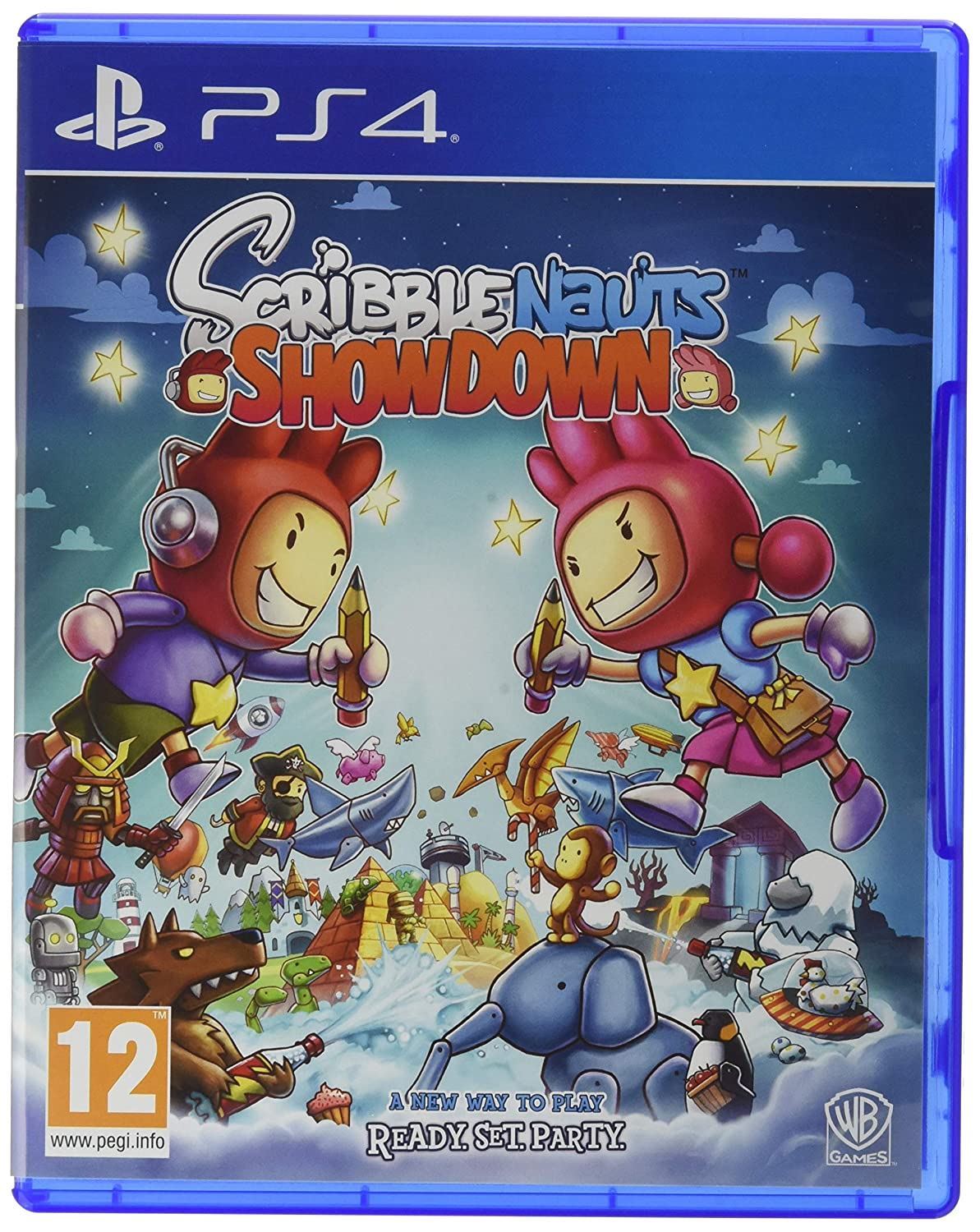 GAME FEATURES Showdown Mode - Up to four competitors can join the fun with the brand-new party mode where players must imagine their way to victory through card-based strategy and creative skill. "Wordy" mini-games require unleashing the best object or character from the game's vast dictionary, while action-oriented "Speedy" mini-games reward the player who completes a given challenge first. Player progress is displayed on a board game style map, with multiple ways to get to the finish line first! Versus Mode - Two players can go head-to-head in more than 25 mini-games that vary in every session. Versus Mode allows continuous play of games by shuffling players into game after game for non-stop fun. This mode can also be played solo. Sandbox Mode - Explore new objectives in the series' popular creative playground featuring eight challenging levels. One or two players can put their imagination to the test to solve objectives and earn hidden Starites and Achievements. Sandbox is also the perfect destination for 1 or 2 players to test their creativity and unleash whatever objects they can imagine and watching them interact in unpredictable ways. Everyone's a Scribblenaut - Players can either choose, or design, their own original Scribblenaut to represent them throughout the game, which can be further customised with unique clothing and quirky accessories by earning Starites and completing achievements.