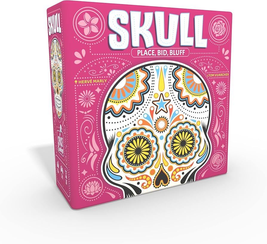 Skull, the famous board game of bluffing and risk-taking, is back in a pink new edition! Each player has a set of 4 discs (3 flowers and 1 skull). On each turn, the player must decide whether to place a disc face down on his mat or to launch a challenge by announcing the number of discs he thinks he can turn over among all the opponents... without falling on a skull!