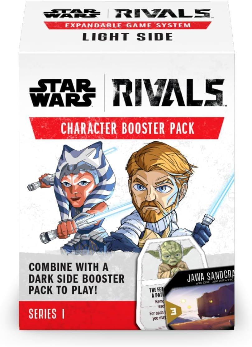 Star Wars Rivals Character Pack Light Side - An epic clash between Dark & Light - series 1 features 30 characters to build your faction. A Dark Side Character Booster Pack is required to play. Contains 1 Character Card, 1 Mover figure, 2 location cards, Die, 5 action cards,