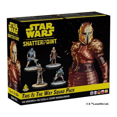The This Is The Way (Mandalorian Covert) Squad Pack brings fan-favorite characters, The Armorer, Paz Vizsla, and the covert Mandalorians to the tabletop! With thematic poses and engaging gameplay, this character pack adds more Mandalorians to Star Wars�: Shatterpoint. Giving gamers and hobbyists more iconic miniatures to expand their collection.