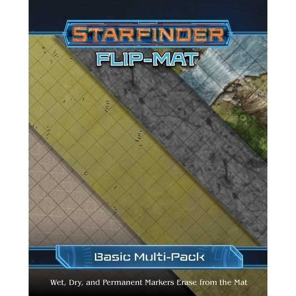 From familiar urban areas to new alien worlds, adventures in the Starfinder RPG can take place just about anywhere! Starfinder Flip-Mat: Basic Terrain Multi-Pack contains two double-sided maps, each featuring a different subtle texture" grassy plain, a mountain stream, a stretch of asphalt, and clean, tiled floor"hat provide you a blank canvas to draw any area of exploration, terrestrial battlefield, or adventure set piece you desire. Starfinder Flip-Mats present ready-to-use science-fantasy set pieces for the busy Game Master. With Starfinder Flip-Mat: Basic Terrain Multi-Pack, you"l be ready for just about everything!
