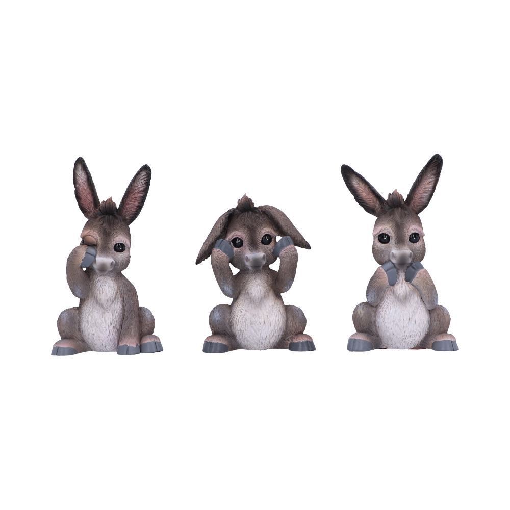 From the delightful imagination of Nemesis Now's in-house design team is these Three Wise Donkeys. Sitting side by side, these Three Wise Donkeys look forward with adorable eyes. One clasps their hooves to their mouth, one blocks their ears and one covers their eyes, sneeking a peek regardless. Cast in the finest resin before being expertly hand-painted, these Three Wise Donkeys are the perfect illustrations of Confucius' famous maxim: "See no evil, hear no evil, speak no evil".