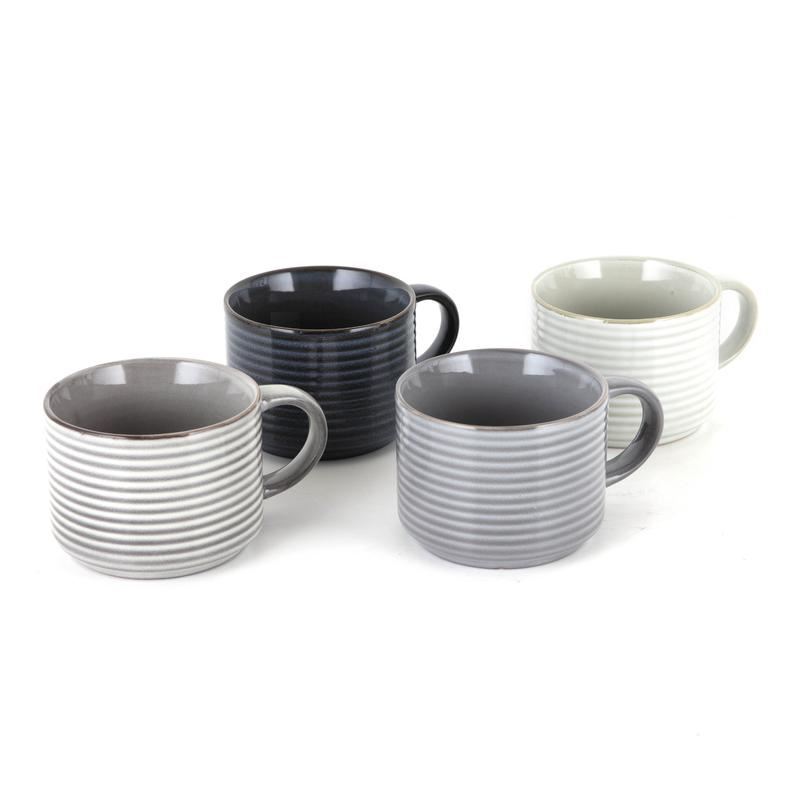 Quench your thirst with flavoursome beverages using Tower's set of 4 stackable mugs from Barbary Oak's Totem collection. Making for an elegant addition to the kitchen, the mug set are designed to be stackable meaning it will save space in the cupboards. It also comes with a metal stand where the mugs can be show-cased on the countertop. Crafted in robust stoneware, the mugs are resistant to chips, cracks and scratches for enhanced durability, providing continued, long-lasting use. Each mug has its own unique ripple design from using the reactive glaze, giving each mug a character of its own and the natural colourways adds subtle rustic charm. Flexible in design, the mugs are suitable for use in the microwave and dishwasher for a fuss-free experience.