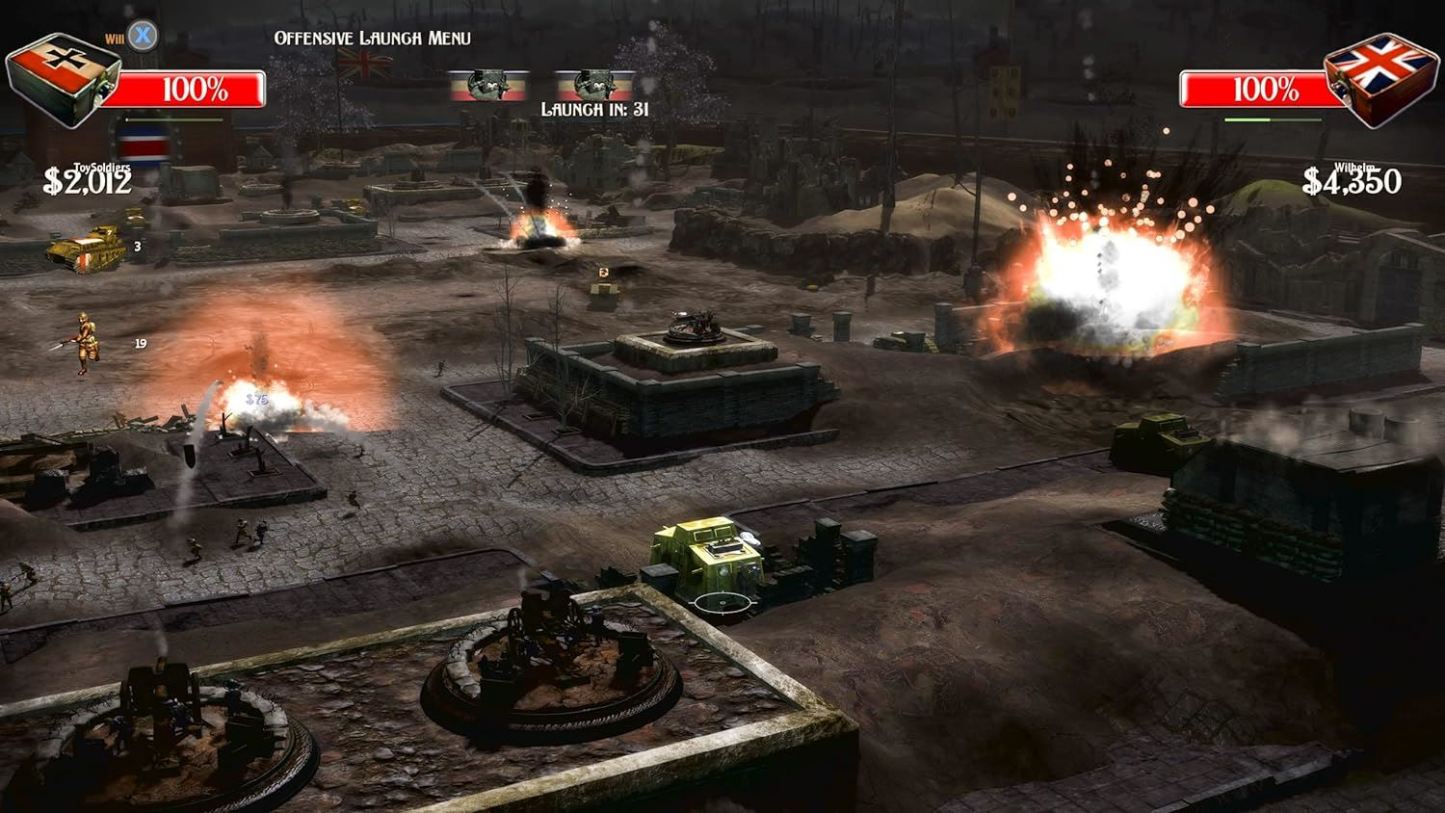 Re-enlist with Toy Soldiers HD and experience the award-winning XBLA hit updated for a whole new generation! Command from above or take direct control below. Lead your foot soldiers, cavalry, tanks and planes to victory. Deploy an exciting arsenal of guns, gas, howitzers, mortars, troops, flamethrowers and vehicles to protect your Toybox in vintage WWI toy dioramas. Toy Soldiers is a multi-genre action-strategy game in which players command antique WWI toy soldiers vying for control of the trench-filled diorama battlefields of Europe. The original classic has been overhauled and upgraded with new content, skins, gameplay, expanded game modes, improved controls and graphical upgrades. We�ve also included all the original DLC and a few new levels as well!