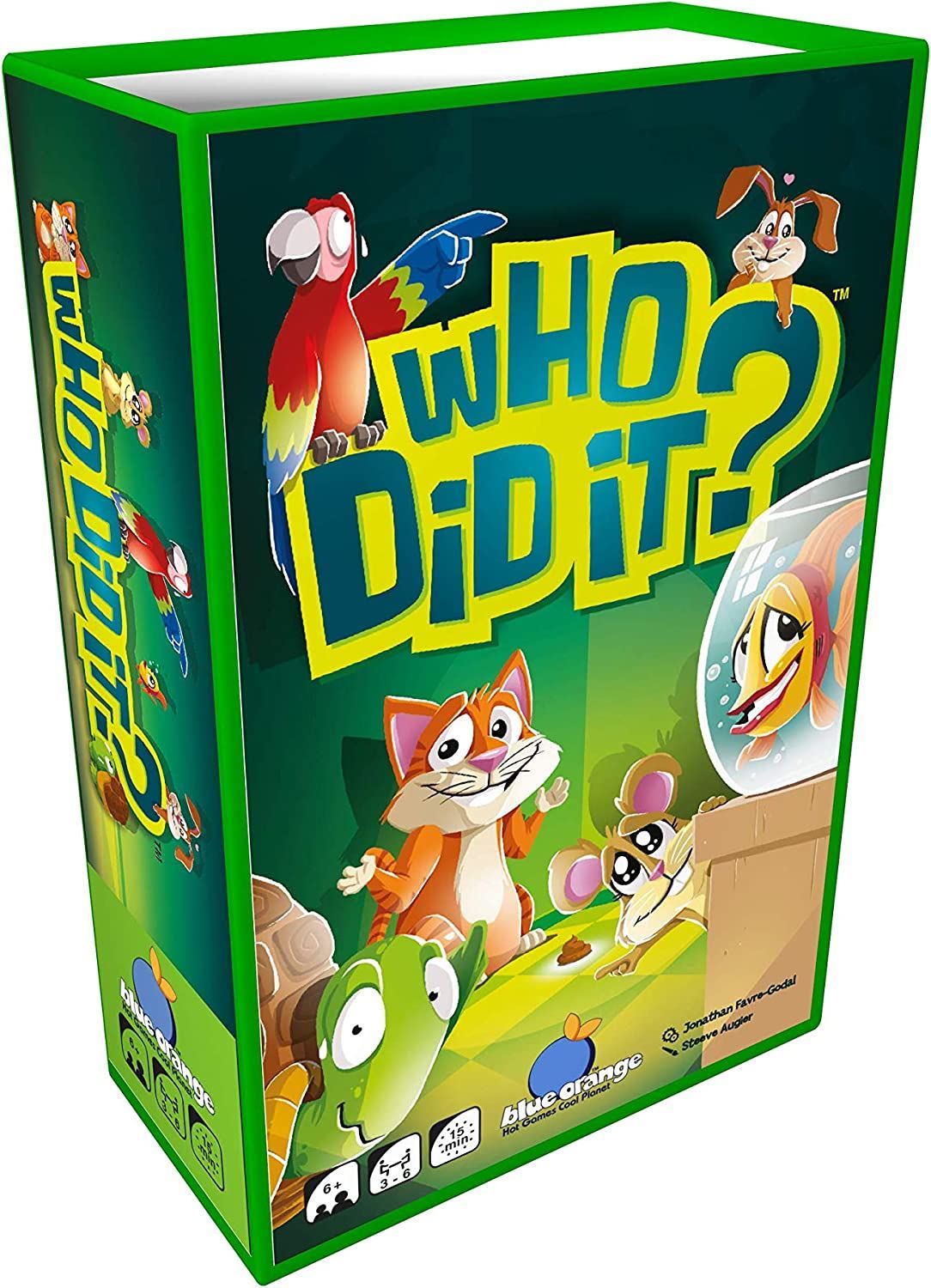 Who Did It? is a hilarious, fast-paced card game that will test your memory and quick thinking. Each card in your hand represents one of your pets, and it's your job to absolve all of them of blame for the stinky mess in the living room.